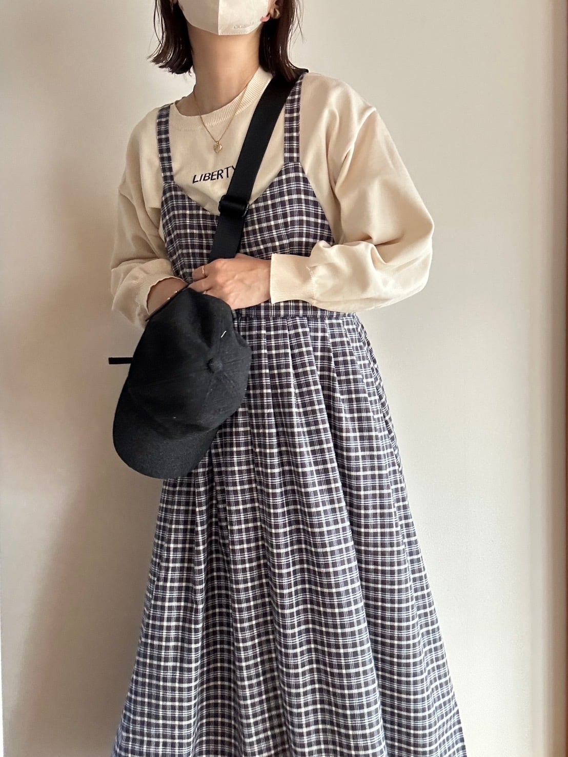 肩ひもは後ウエストで結わいているので、長さ調節可能です。