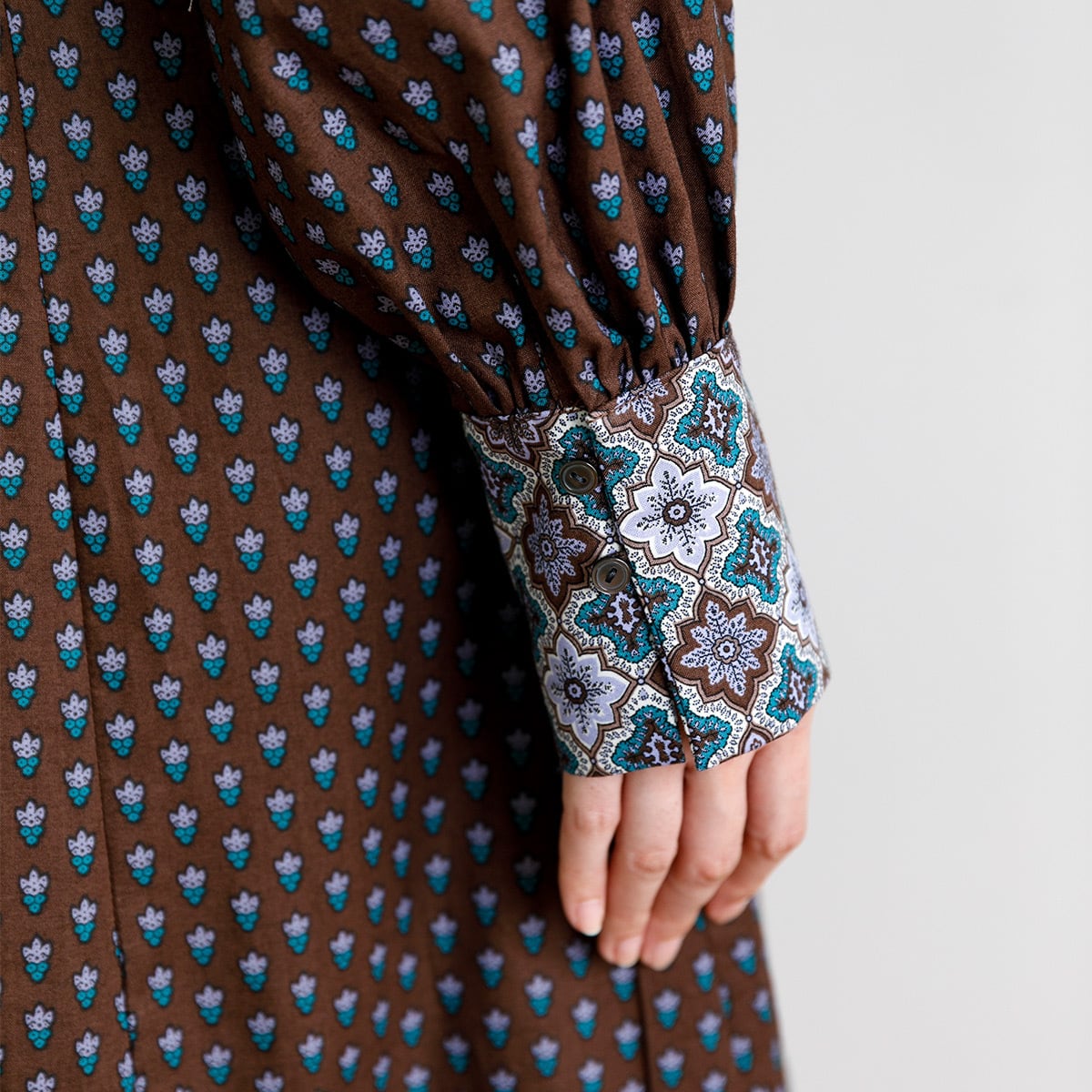 ヨークとカフスの柄の切り替えがアクセントになっています。