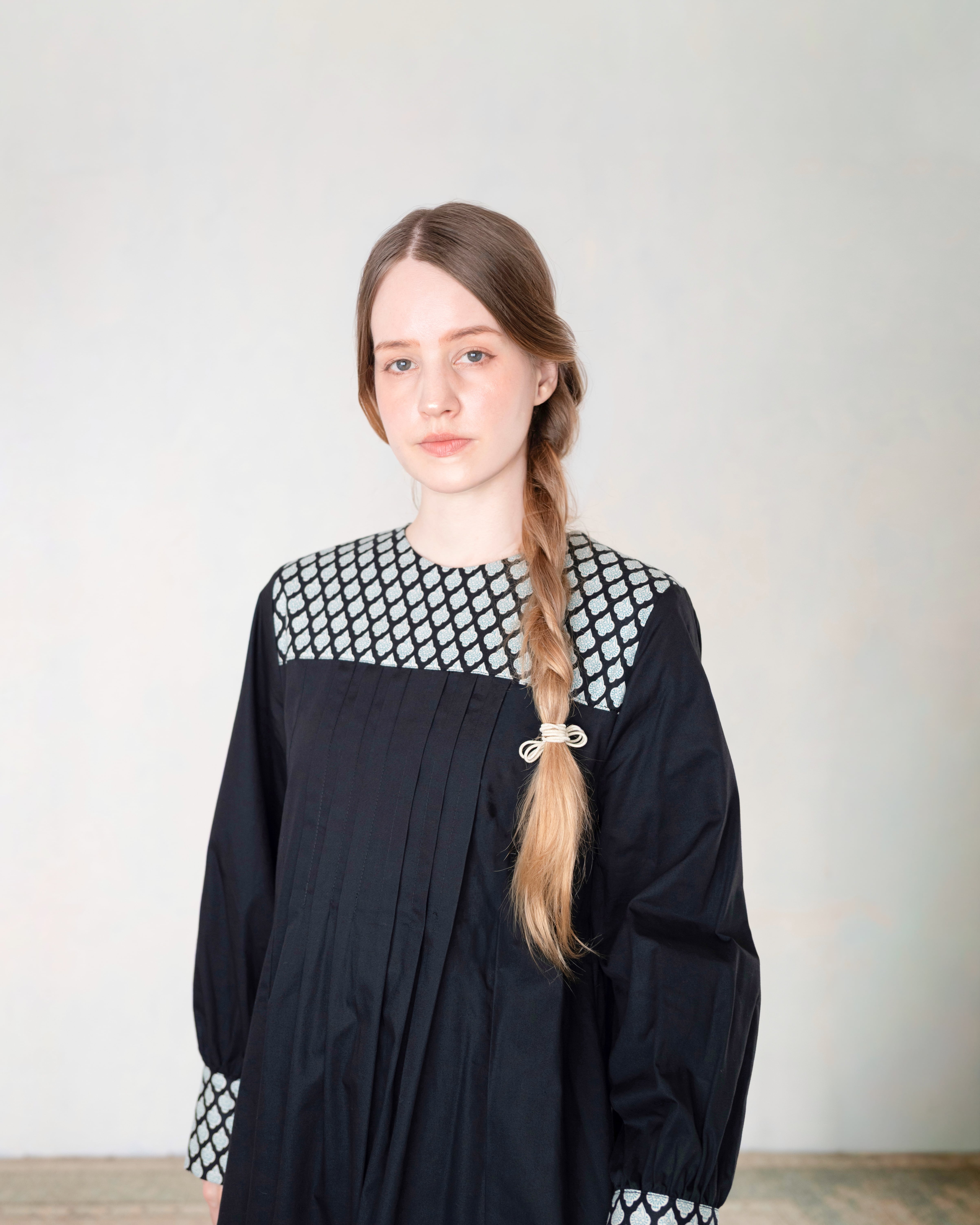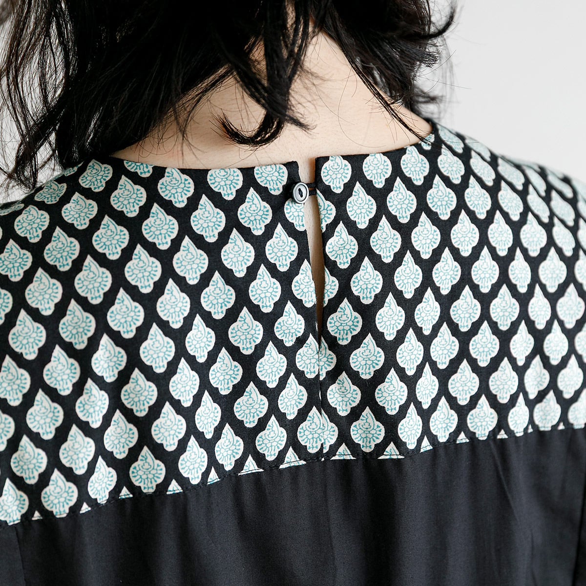 ヨークとカフスの柄の切り替えがアクセントになっています。