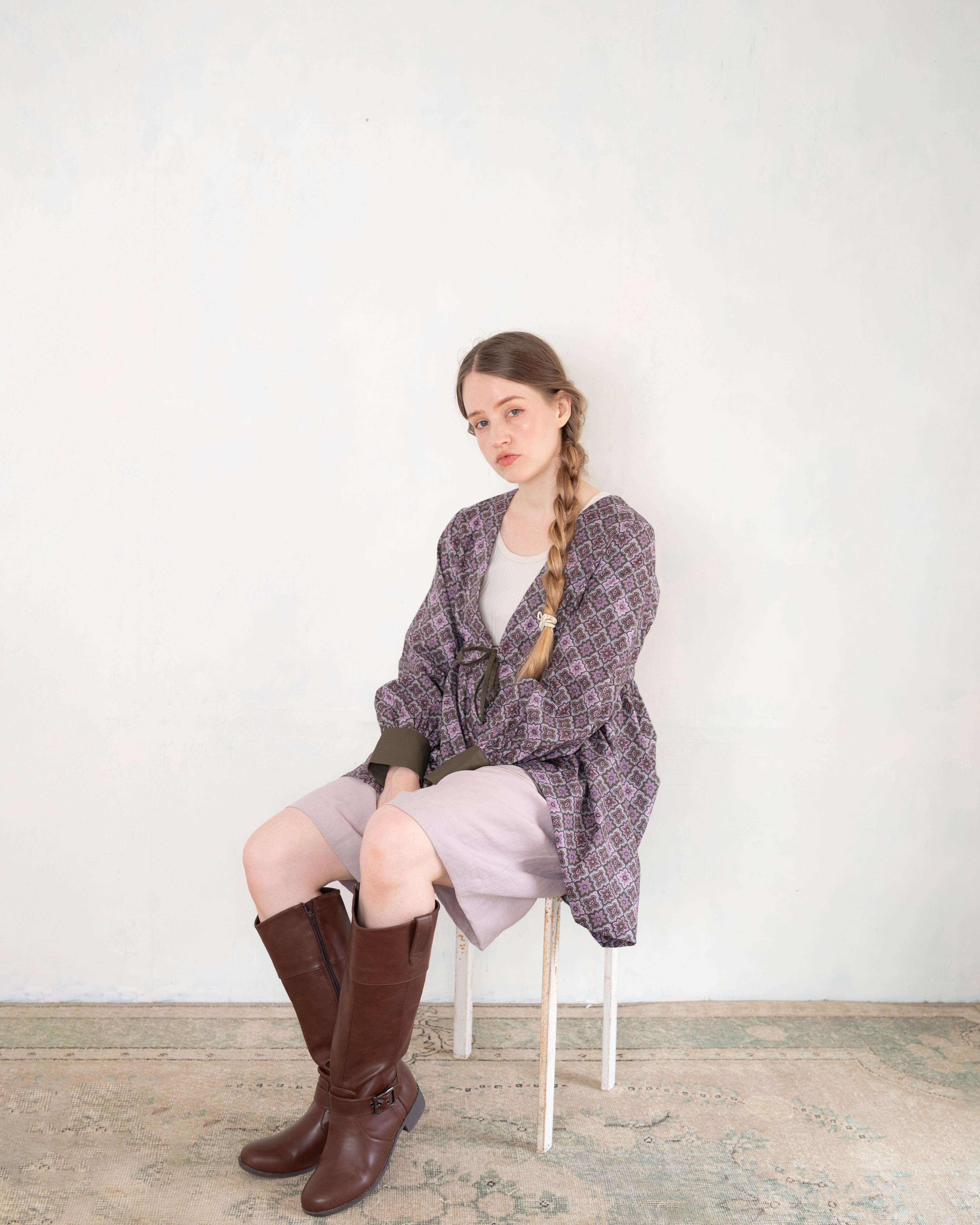 中にひもを通しているので、ゆったりでもしっかり絞ってもお好きなように着て頂けます。