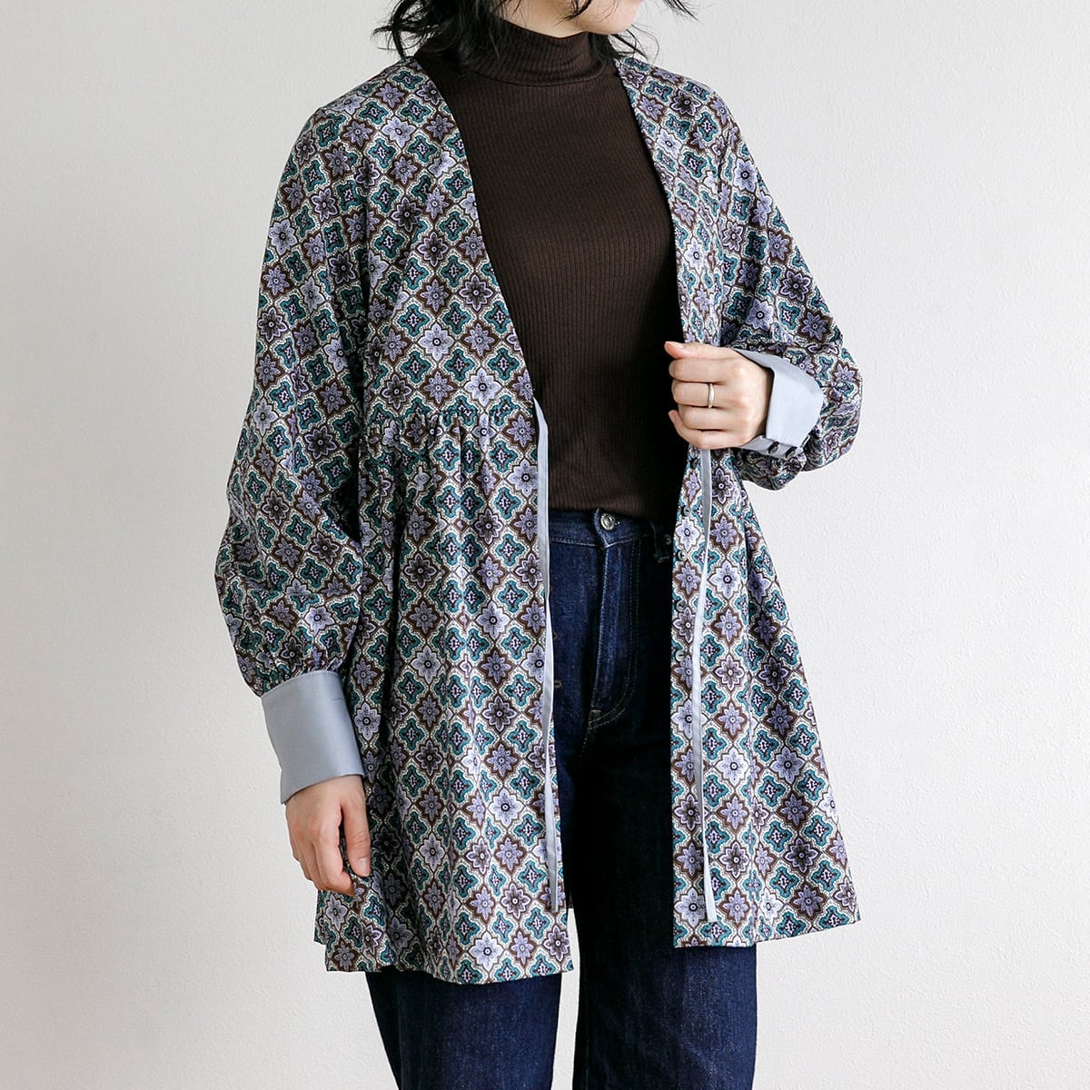 前をあけて羽織りとして着用も可能。
